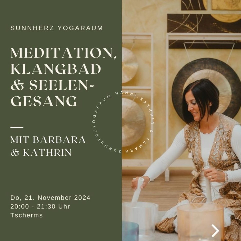 Meditation, Klangbad & Seelen-Gesang @ Sunnherz Yogaraum giovedì 21 novembre 2024 20:00 21:30 Google Calendar ICS Wir beginnen mit einer tiefgehenden Meditation, um dich anschließend in die sanften, harmonischen Klänge der Kristallklangschalen und den heilsamen Seelengesang von Barbara zu führen.Energieausgleich 30 EuroAnmeldung bei Kathrin 333 318 2975